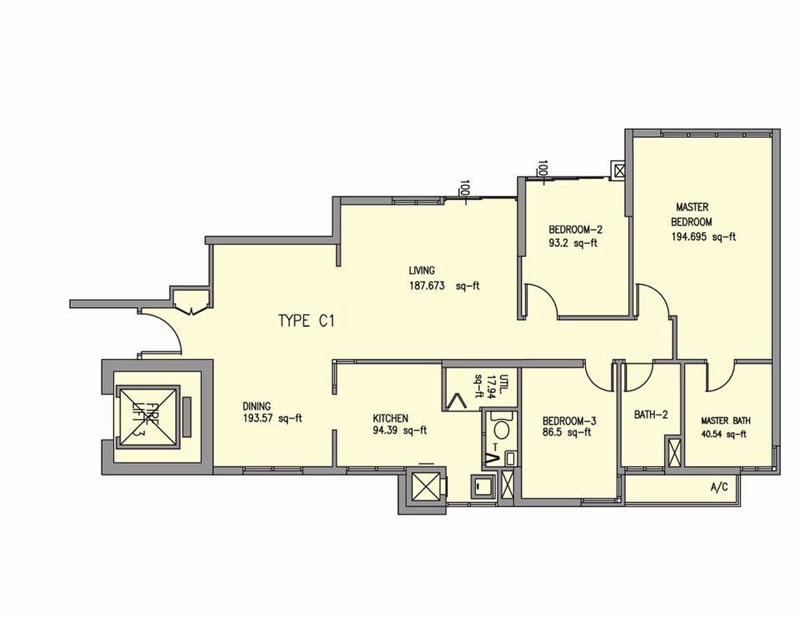 | Room Type (3 Bedrooms) | Measurement (1283 Sqft & 1404 Sqft) |